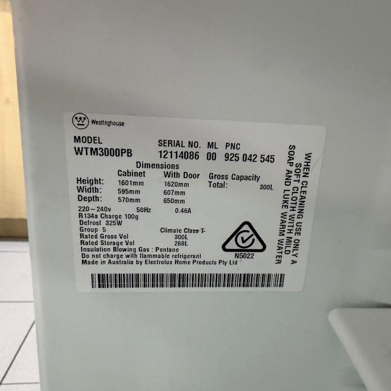 Westinghouse WTM3000PB 300L Top Mount Fridge – 1 available